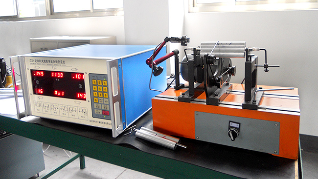 平衡機由控制驅(qū)動部分、彈性支撐部分和傳感測量系統(tǒng)部分組成,驅(qū)動部分控制旋轉(zhuǎn)體旋轉(zhuǎn),其不平衡震動迫使彈性支撐架發(fā)生變形,由安裝在支撐架的傳感器感應(yīng)出電信號給電測系統(tǒng),最后經(jīng)過電測系統(tǒng)的計算處理直接顯示出平衡量的大小和位置。